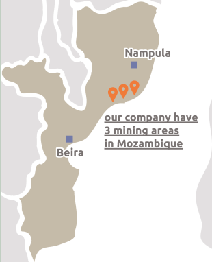 Our company have 3 mining areas in Mozambique, Africa, covering a total area of 1,500 square kilometers.